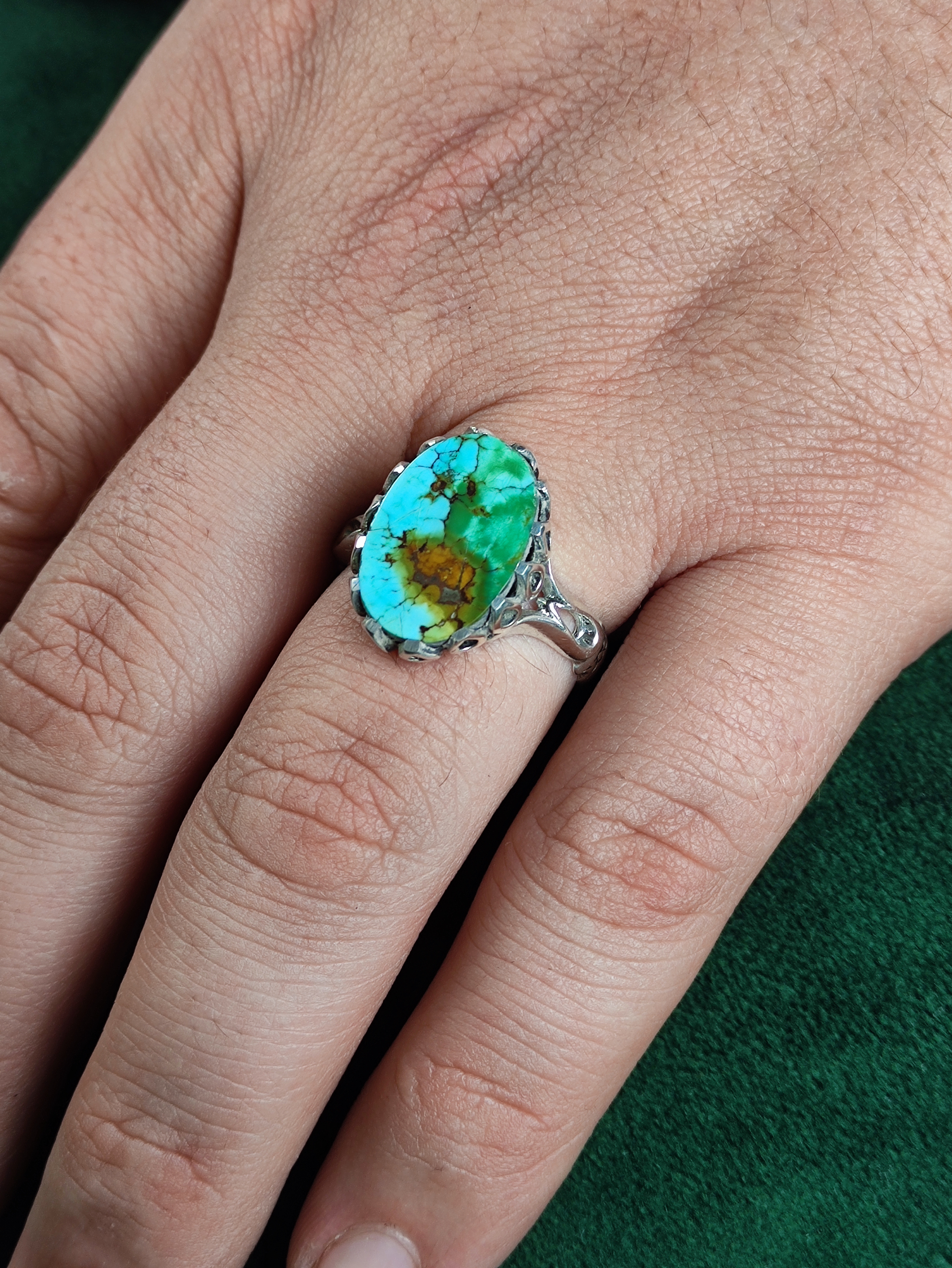 با انگشتر نقره فیروزه نیشابوری اصل، جذابیت و اصالت را به دستان خود هدیه دهید. این انگشتر با رکاب صفوی و طراحی چنگ اشکی، تلفیقی از هنر و تاریخ است. سنگ فیروزه نیشابوری با رنگی خیرهکننده به شما حس خاصی میبخشد و انتخابی فوقالعاده برای طرفداران اصالت و زیبایی است. همین حالا خرید کنید و جلوهای بینظیر به استایل خود ببخشید!