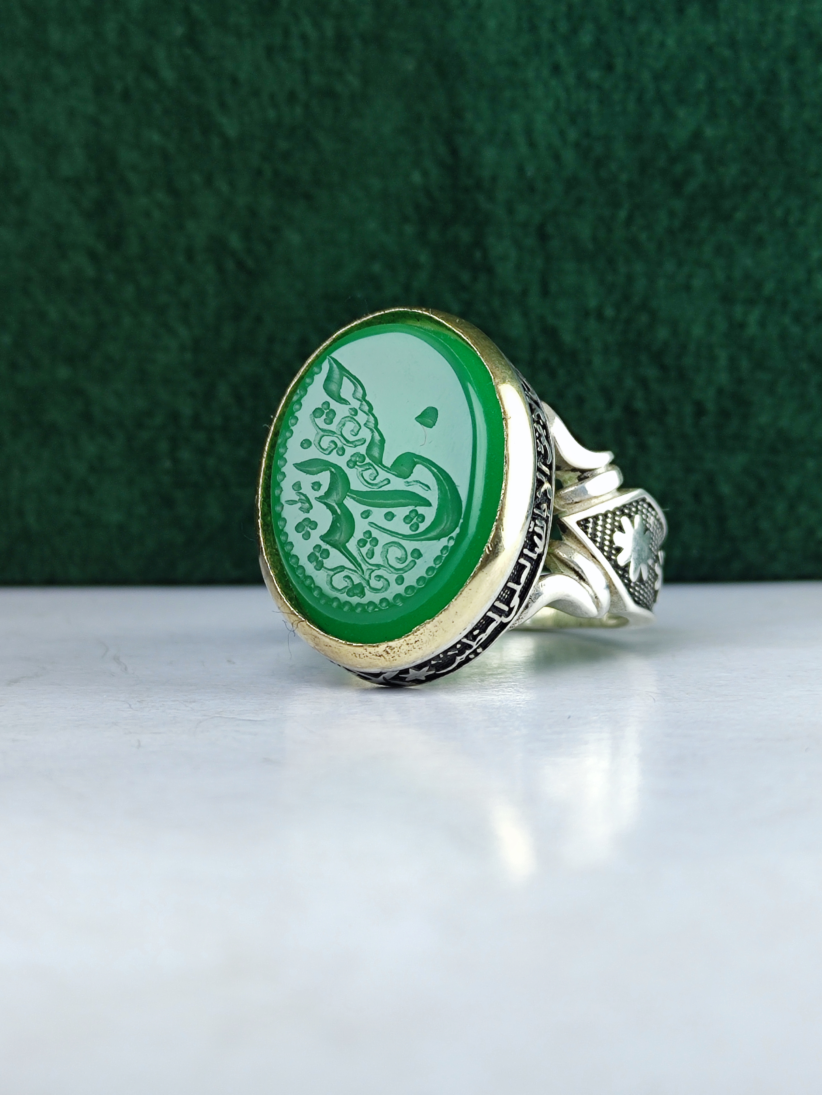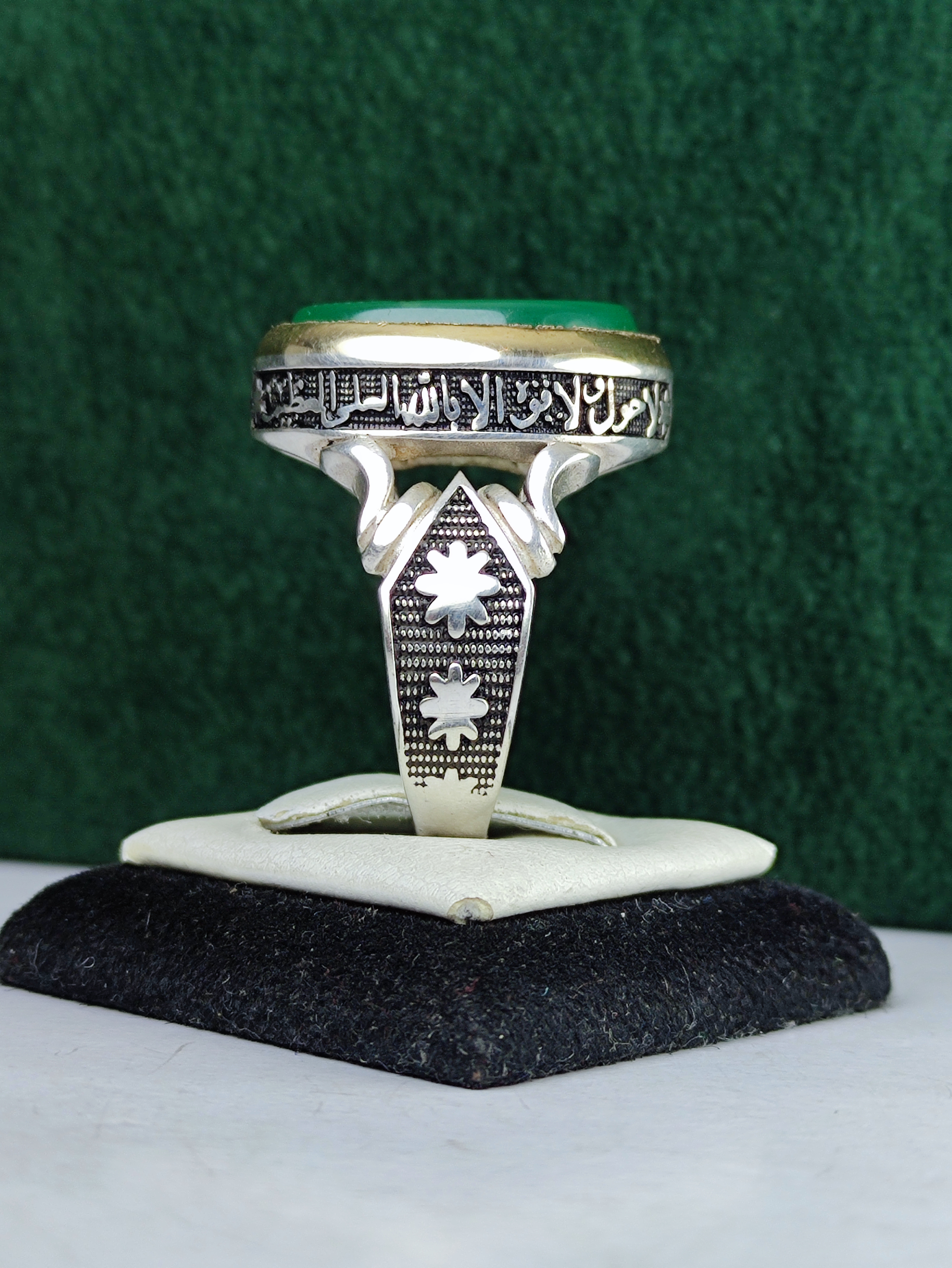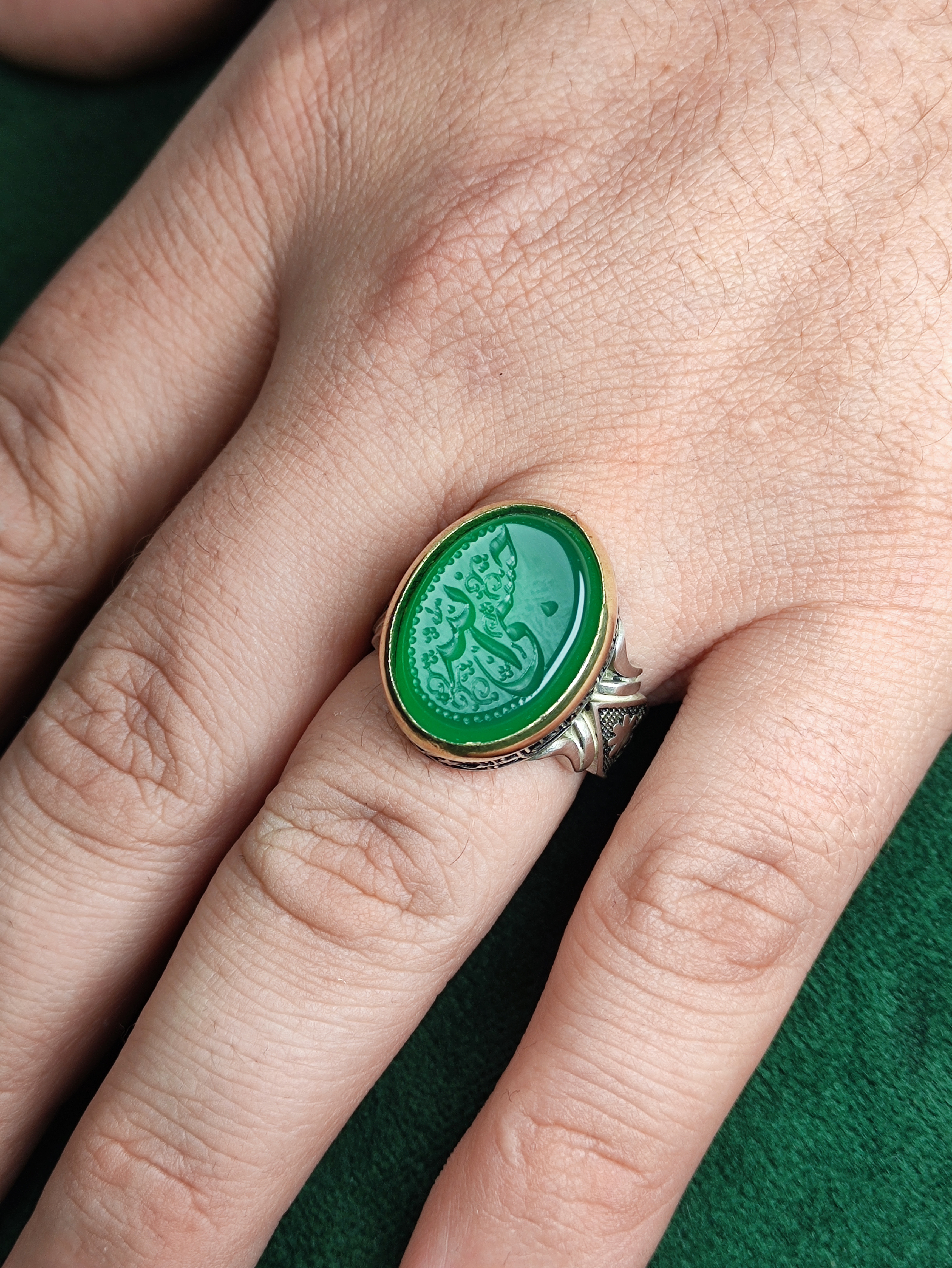 با این انگشتر نقره عقیق سبز، جادوی زیبایی و اصالت را به دستان خود بیاورید! حکاکی خاص "حسبی الله" بر روی نگین، نمادی از اعتماد و قدرت است. طراحی رکاب صفوی با هنر قلمزنی منحصر به فرد، این قطعه را به انتخابی بیهمتا برای افرادی که به دنبال شکوه و جذابیت هستند، تبدیل کرده است. فرصت را از دست ندهید و درخشندگی را به استایل خود اضافه کنید!