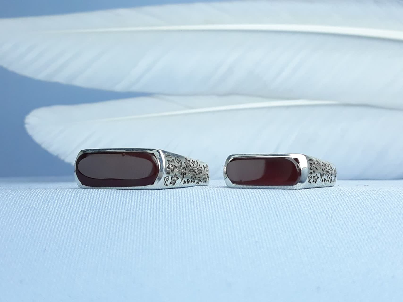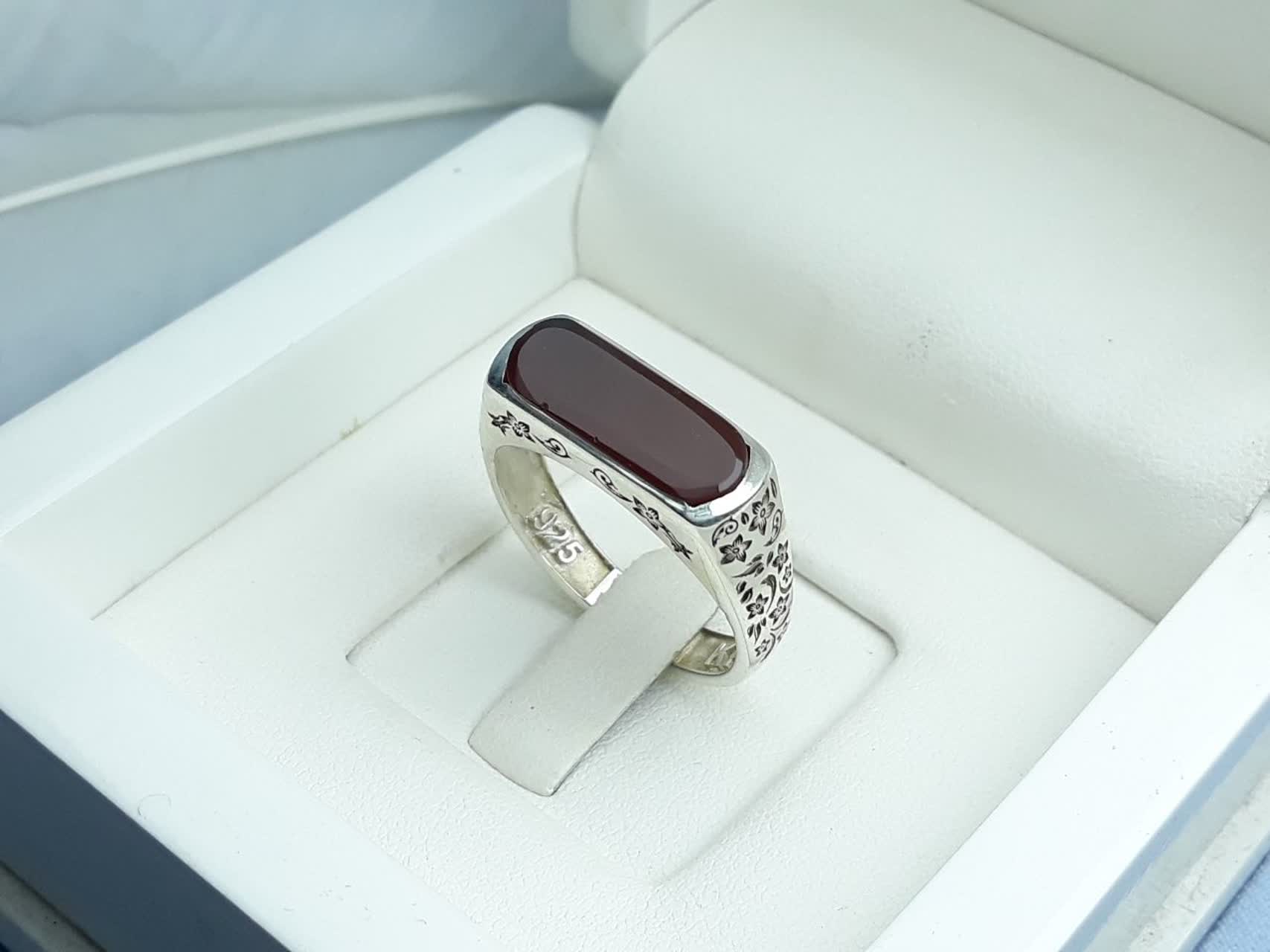 ست انگشتر نقره عقیق سرخ تراش کپسولی درجه یک