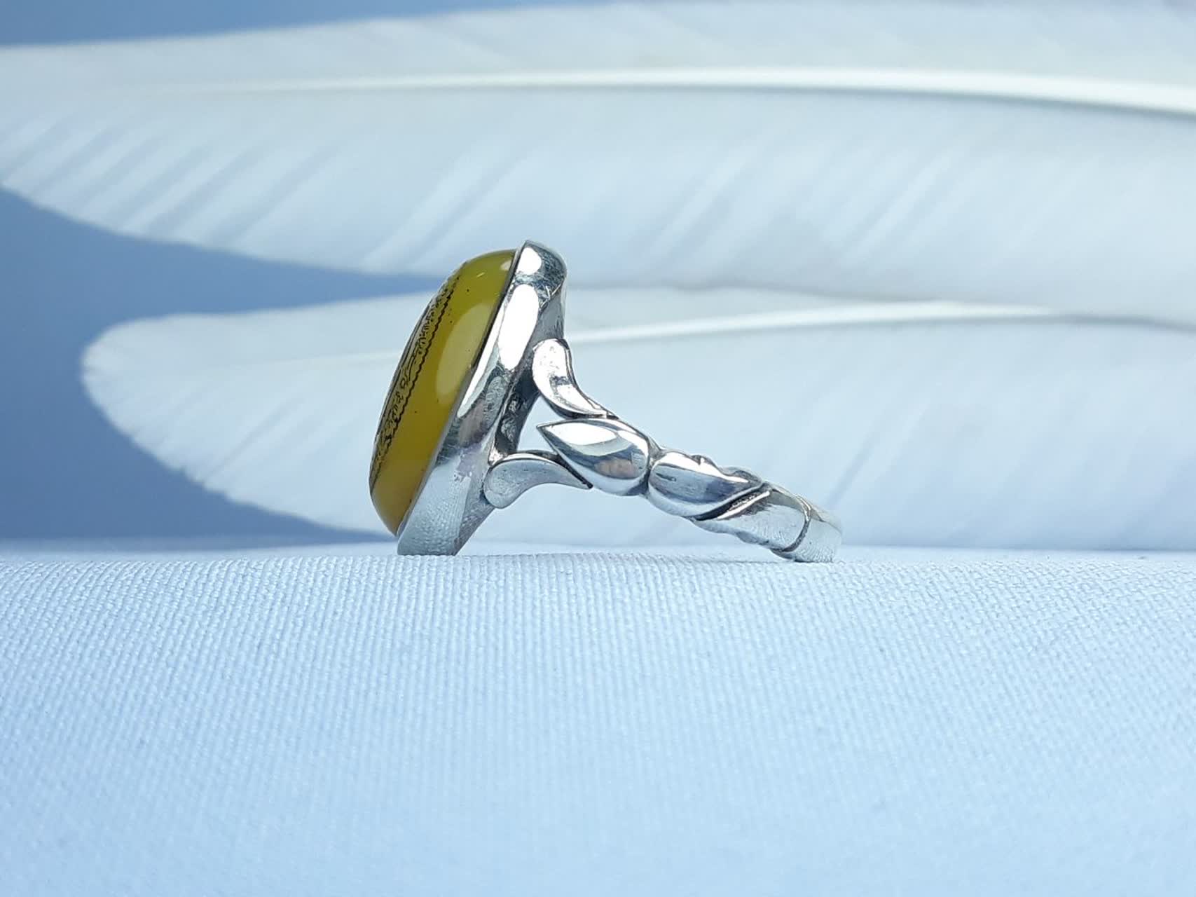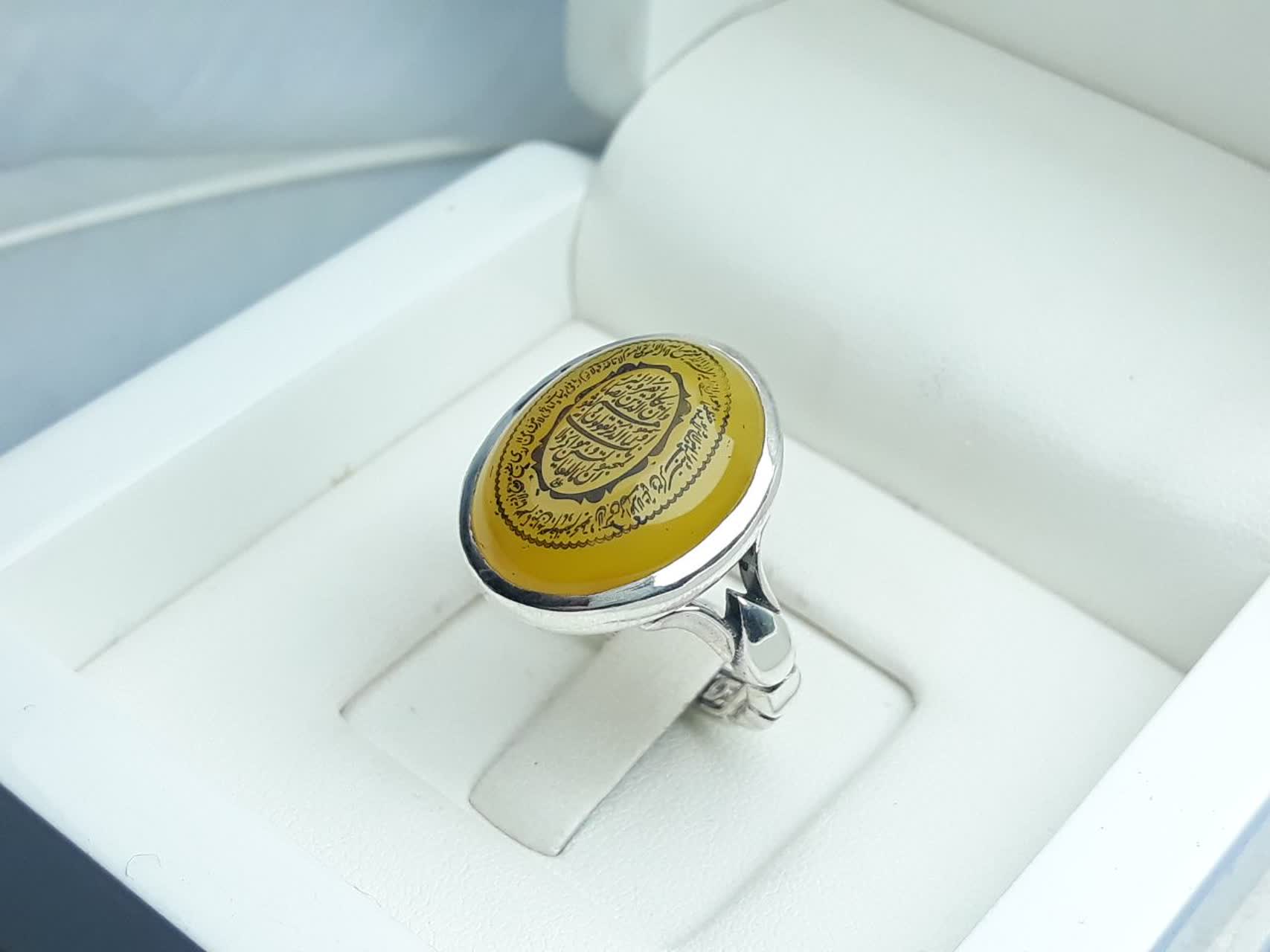 انگشتر نقره عقیق زرد شرف الشمس حکاکی و ان یکاد و آیت الکرسی
