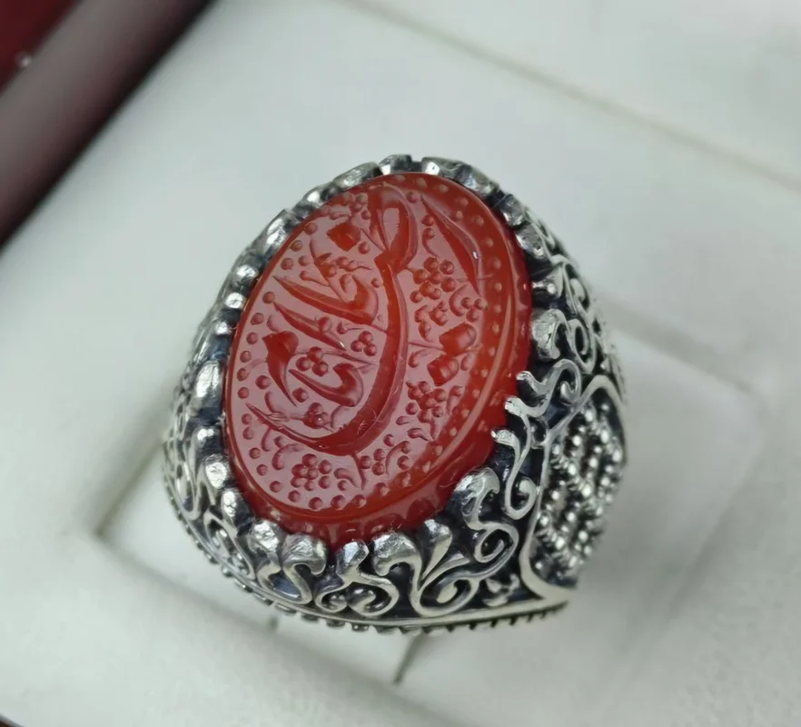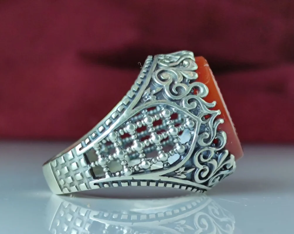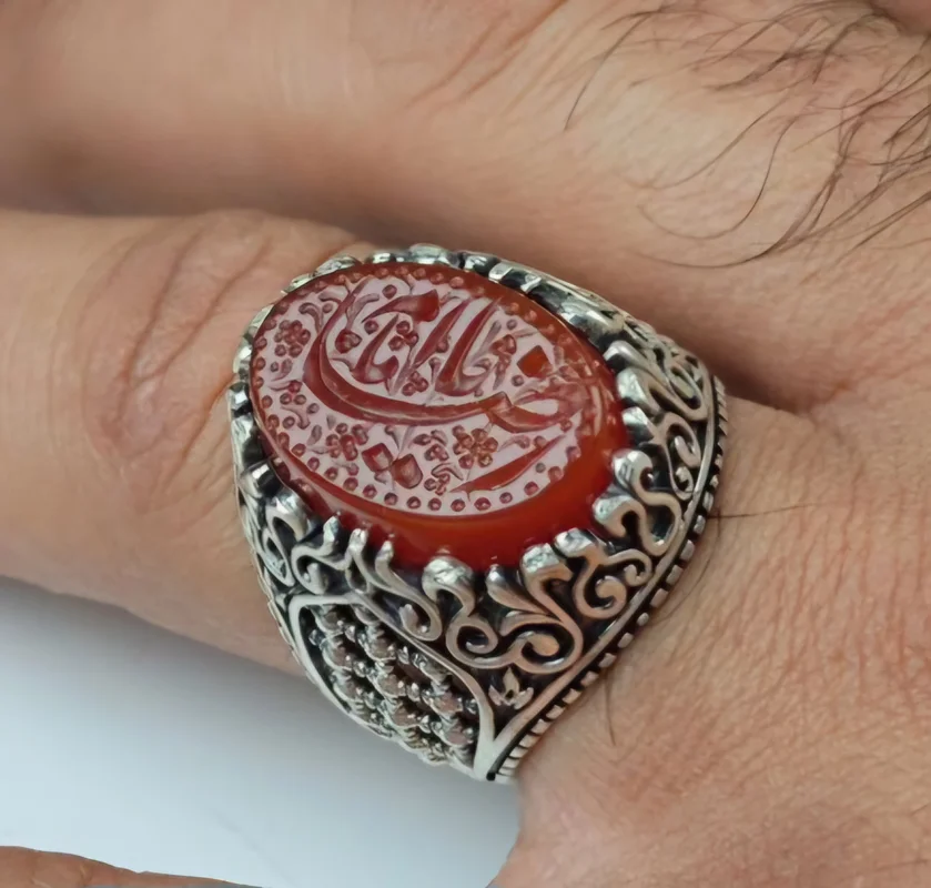انگشتر نقره عقیق سرخ خطی حکاکی یا امام رضا