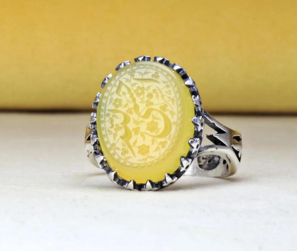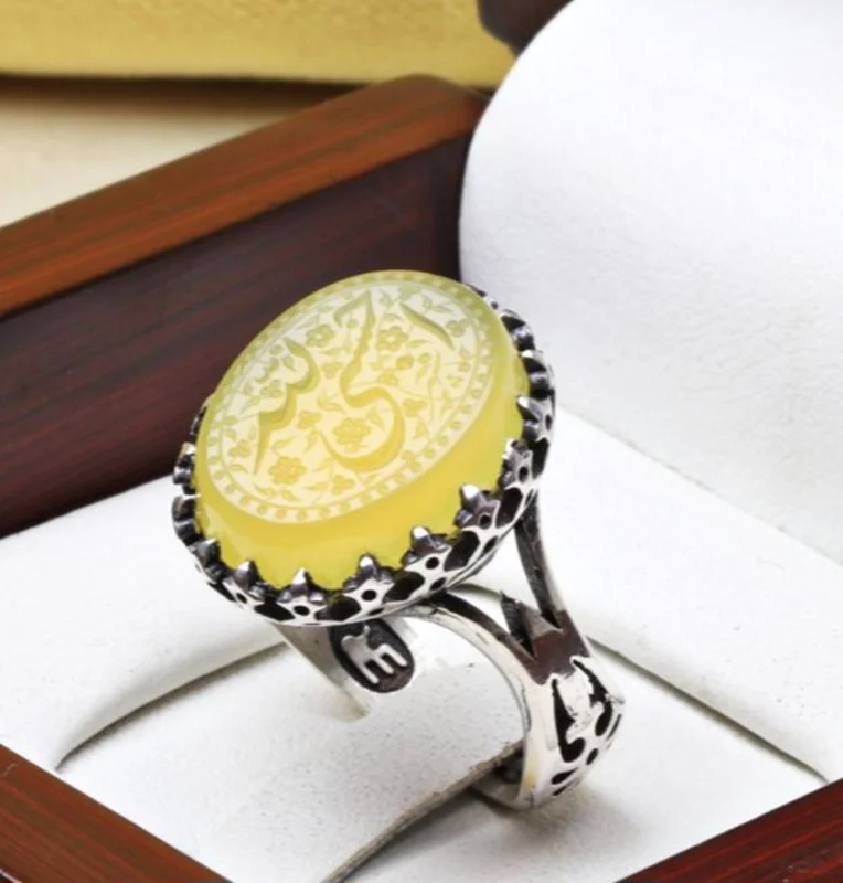 انگشتر نقره عقیق زرد خطی منقش حسبی الله