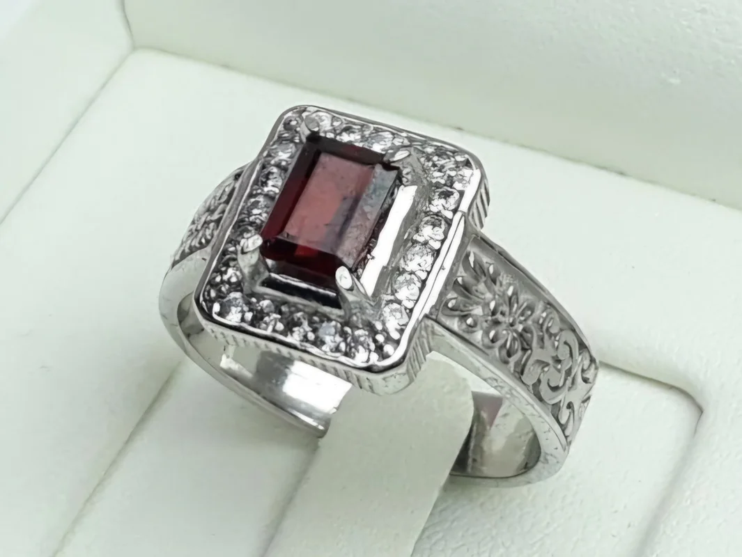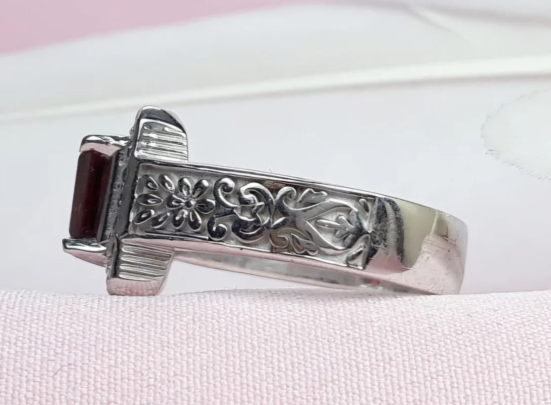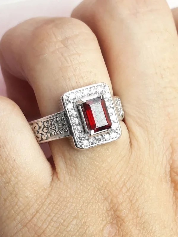 انگشترنقره گارنت چهارگوش رکاب اسپرت