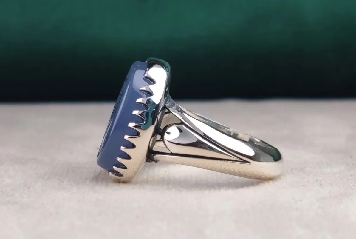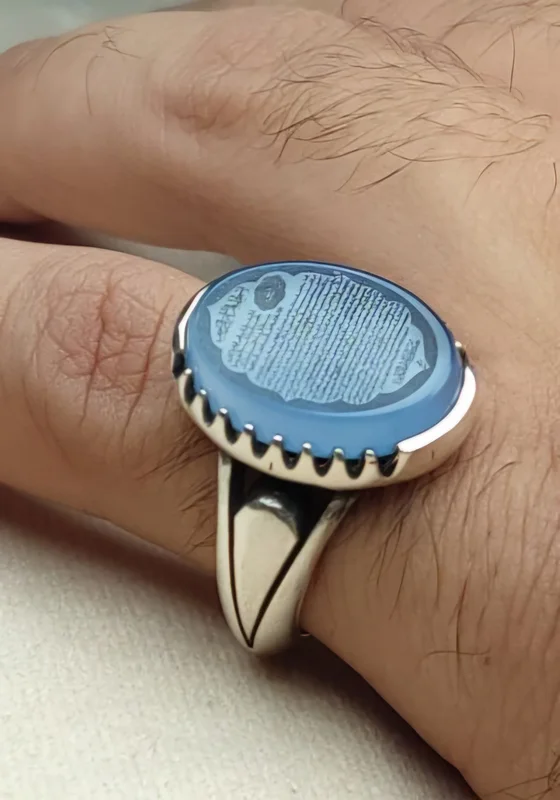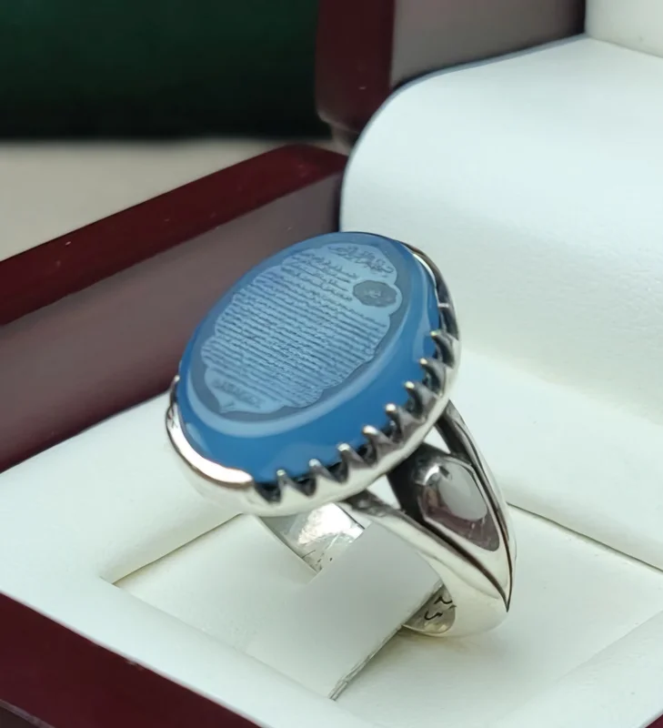 انگشتر نقره عقیق کبود خطی حکاکی لیزری سوره واقعه